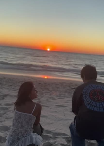 ロマンチックな風景と自然体の二人の姿が印象的な、理想のパートナーシップを感じさせる投稿である。