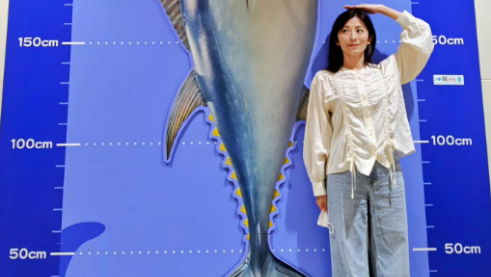 豊洲市場にあるクロマグロの実寸大パネルとツーショットで写った中田にファンの注目が集まっている。