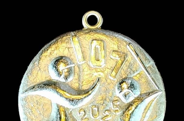今年は、左に走者、右に打者を配置し、流線形の抽象表現で表した。背面にはボールをイメージさせる球体を配置した。「大会回数の107と開催年の2025の文字にも動きをつけ、107回の大会を楽しむ姿勢で戦いぬこうとする気持ちを象徴的に表現した」という。(仲程雄平)