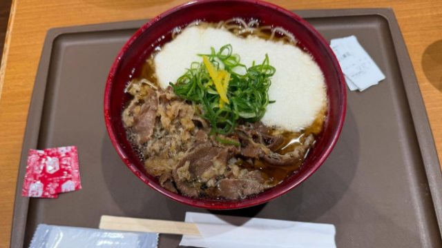 牛肉にとろろがたっぷり乗った美味しそうなお蕎麦の写真がアップされた。