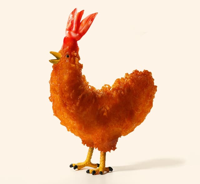 「天才!」ミニチュア写真家・田中達也がエビフライで作ったニワトリの作品が話題 | 話題の投稿