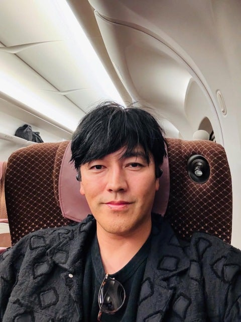 落ち着いた車内の雰囲気と、彼の穏やかな表情が印象的だ。新幹線の座席も上質で、旅の始まりを感じさせる一枚となっている。黒のジャケットにサングラスを合わせたコーデも渋く決まっていて、「そうだ京都、行こう。」の一言がぴったりハマっている。静かな移動時間を楽しんでいる余裕が伝わってくる。