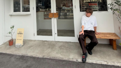 おしゃれのカフェ前のベンチに腰掛ける、サングラス姿のシュウペイのイケメンショットにファンの注目が集まっている。