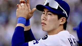 ベンチで戦況を見つめるキム・ヘソン。(C)Getty Images タレントの宝庫と言えるドジャースで、“韓国の至宝”キ…