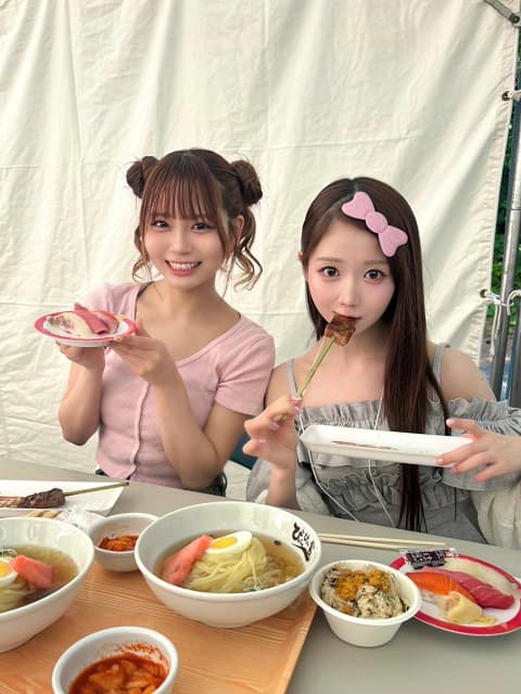 それから「来てくださったみなさん水分とってゆっくり休んでくださいね 」とメッセージを送り、「\ おいし〜 /」と写真の自分の声を代弁するような言葉を記した。