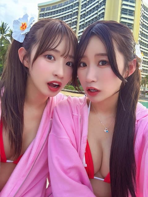姉妹でお揃いの水着を着た双子コーデを披露し、セクシーかつ可愛らしい魅力をダブルでファンに届けた。