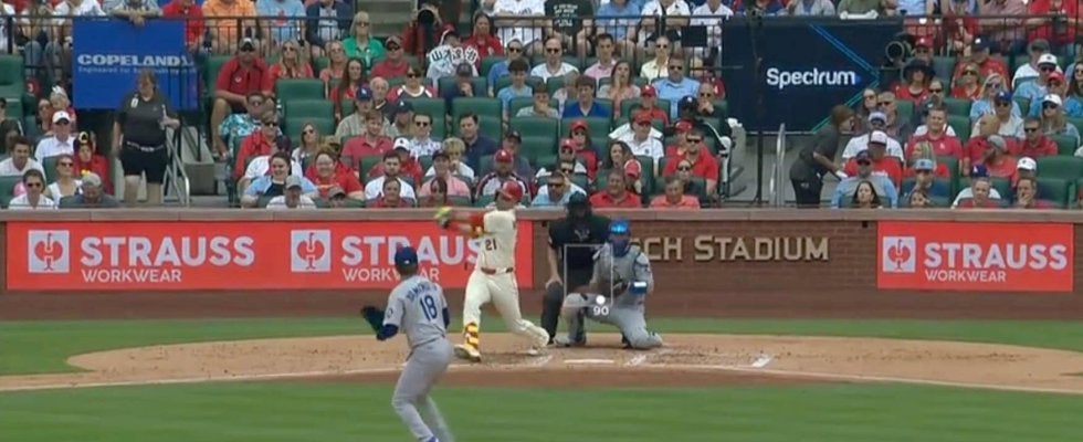 2回裏、カージナルスの攻撃でのことだ。カージナルス打線は2死からドジャース先発の山本を攻め立て、ゴーマン内野手、ペドロ・パヘス捕手が連続ヒットで出塁すると、9番打者スコット外野手は死球で出塁し、2死ながら満塁に。この先制のチャンスで打席が回ってきたのが、トップバッターのヌートバーだった。