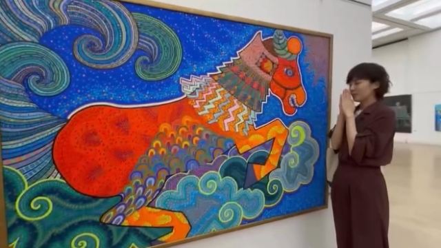 アーティスト田中聖子の作品からパワーをもらうような仕草を見せ、手を合わせるにしおかの姿にファンの注目が集まっている。