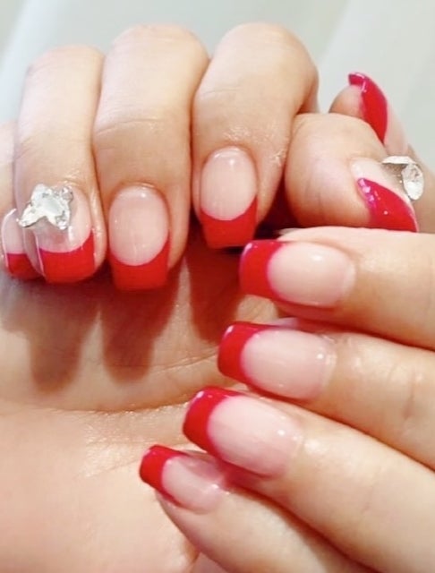 「『ベルフラワー(Bellflower)』さんで、いつもよりネイルを短くして、久しぶりのスクエアカット。赤のフレンチネイルに、スワロのバタフライとビジュー」と綴り、複数枚の写真をアップした。スクエアカットの美しいラインに、鮮やかな赤のフレンチが映える仕上がり。短めに整えた爪先が上品さを引き立てつつ、バタフライのスワロフスキーとビジューが華やかさをプラスしていて、絶妙なバランスに仕上がっている。シンプルな中にも個性が光り、洗練されたセンスが感じられる。