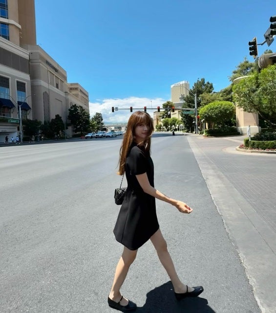続けて「ベガスでジュエリーの勉強したり、美味しいの食べたり、コンサート見に行ったりゆっくりしてます!。ヨンズまた今週は大阪や東京popupで会おうね!会いに来てね。」と綴り、投稿を締めくくった。抜けるような青空の下、広々としたベガスのストリートを軽やかに歩く姿が、とても絵になる。シンプルなブラックのワンピースに、小さめのバッグとフラットシューズを合わせた装いは、上品でありながらリラックス感もあって、彼女の自然体な魅力が際立っている。振り返るような表情には余裕と自信がにじみ、充実ぶりがそのまま伝わってくる。