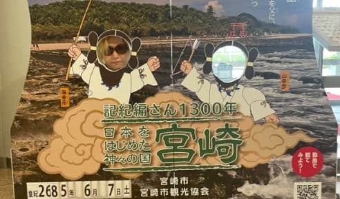 「岐阜から宮崎へ。飛行機が久々のプロペラ機だったけど意外とあんまり揺れなかったな。宮崎気温が暖かいね。しかし顔ハメパネルは服装とか髪型がだらしなくても全て隠してくれるから便利過ぎる!これからもどんどんハメていこう! 明日は宮崎ソロライブです〜」と綴り4枚の写真を投稿。ライブツアーで宮崎県に訪れていることを報告した。