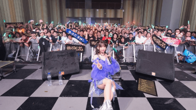 中国のファンをバックにダブルピースで写った亜咲花にファンの注目が集まっている。