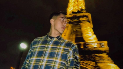 夜のライトアップされたエッフェル塔をバックに、視線をそらした小田のイケメンショットにファンの注目が集まっている。