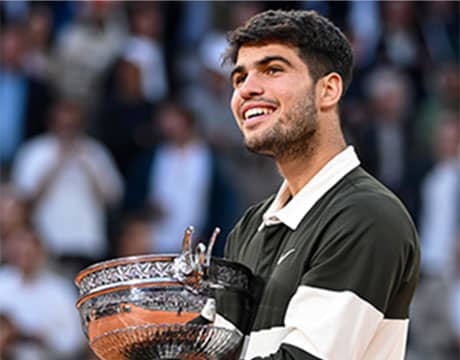 テニスの全仏オープン(フランス/パリ、レッドクレー、グランドスラム)は日本時間9日(現地8日)、男子シングルス決勝が行われ、第2シードのC・アルカラス(スペイン)が第1シードのJ・シナー(イタリア)を4-6, 6-7 (4-7), 6-4, 7-6 (7-3), 7-6 (10-2)の死闘の末に大逆転で破り、オープン化以降では史上8人目となる大会2連覇を成し遂げるとともに、四大大会で5度目のタイトルを獲得した。試合時間は5間29分を記録し、同大会史上最長の決勝となった。試合後の会見でアルカラスは「今日は自分を一度も疑わなかった」と語った。