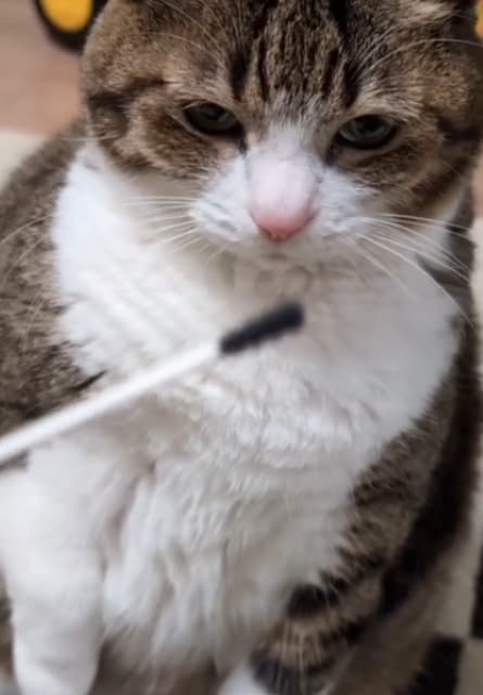 どうやら愛猫との日常での触れ合いを撮影し、披露しているようだ。綿棒に興味津々な様子がとても可愛らしく、癒される動画になっている。