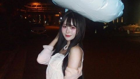 淡い色のキャミソールにピンクのカーディガン、デニムパンツ姿のさくら。雲の形の風船を持ったショット、カメラをまっすぐに見つめるショットなどを公開した。