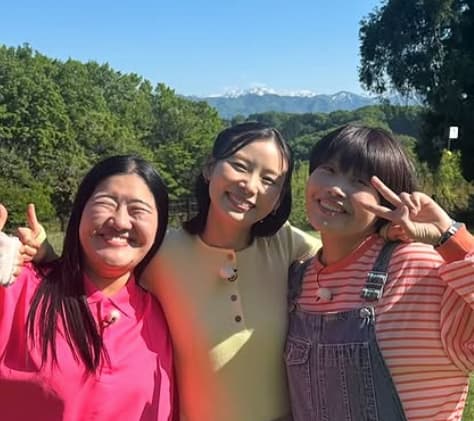 「『ニノさんとあそぼ』TVerで配信中です 休憩中にガンバレルーヤさんと写真を撮ってたら邪魔されました!」と綴り、複数枚の写真をアップ。