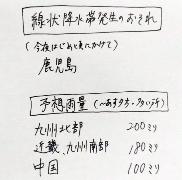 【警戒呼びかけ】気象予報士・くぼてんき、「今夜は線状降水帯発生のおそれ」と注意喚起