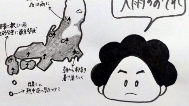 「西日本は大雨のおそれ。#北日本は晴れて暑さ続く #関東甲信は梅雨入りか #九州は線状降水帯発生のおそれ #沖縄は紫外線と熱中症の対策を」と綴り、1枚のイラストをアップ。
