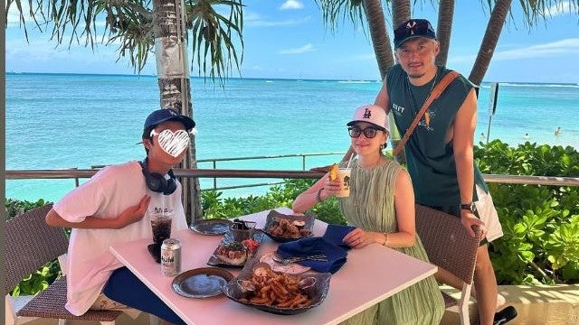 「サンフランシスコにいる息子とハワイで合流して休暇を楽しみ、無事に3人で帰国しました」と綴り、最新投稿をアップ。青い海をバックに、息子と写るショットを公開した。