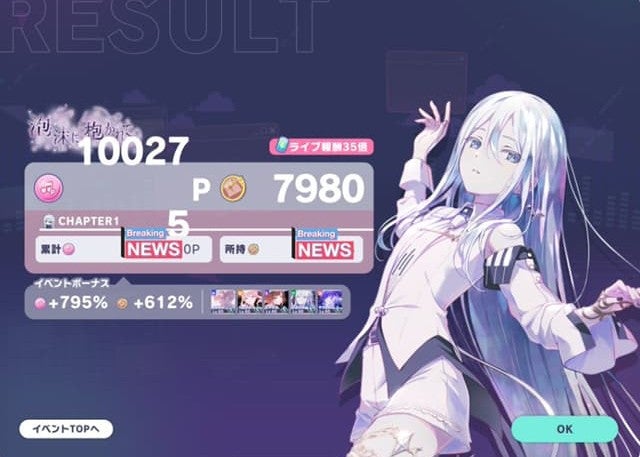 直前のライブで手に入れたポイントが奇妙な改行により表記バグを起こしているが、それだけ今のイベントに必死に向き合っている彼の姿が想像できる。