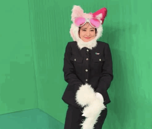 ピンクのサングラスをつけた猫の被り物を被った大沢の姿を披露した。