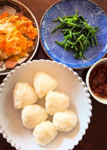 おいしそうな白おにぎりと、色とりどりの食事の写真を公開した。