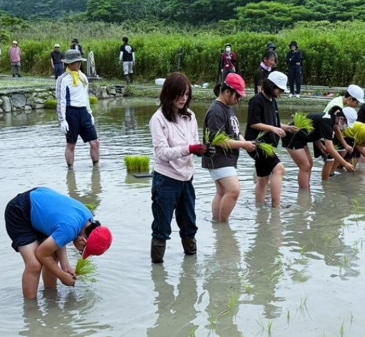 「赤米田植え@対馬」と綴り、5枚の写真を公開した。