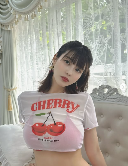 可愛いさくらんぼ柄だけどかなりセクシー着こなしのギャップに、ファンは釘付けに…。