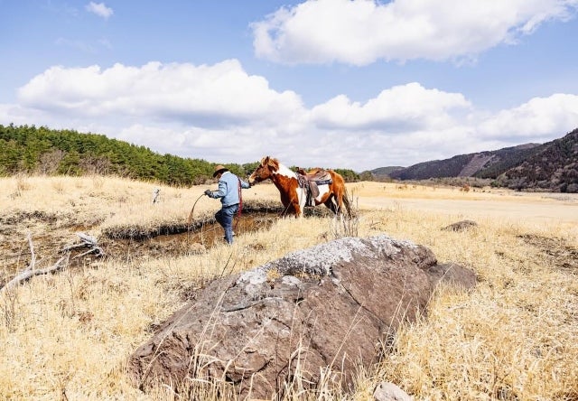 そこに映っているのは「信頼を越えた絆」という言葉そのままの、深く静かなつながり。馬を引く人の背中から、そして穏やかに寄り添う馬の姿から、互いへの敬意と安心感が伝わってくる。自然の中で生まれる無言の対話、施設の方々と馬との関係性が、優しさと信頼に満ちていて、見る者の心まであたたかくしている。彼の目線がやさしく、そして真っ直ぐだからこそ、この風景は特別な輝きを放っている。