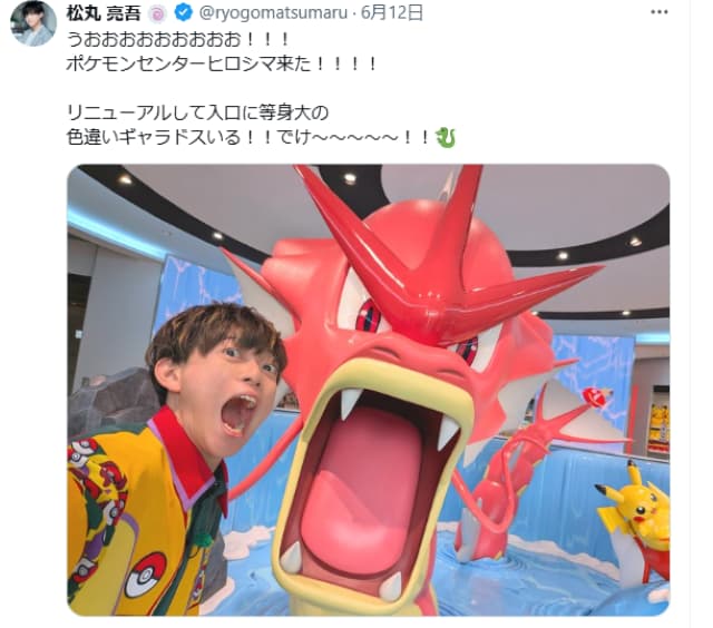 松丸亮吾、ポケモンセンター広島で「でけぇ」赤いギャラドスと対峙!! | 話題の投稿