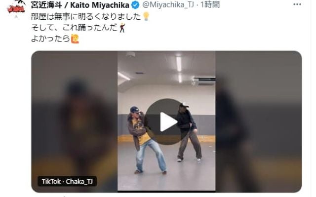 宮近海斗、明るくなった部屋で喜びをダンスで披露!? | 話題の投稿