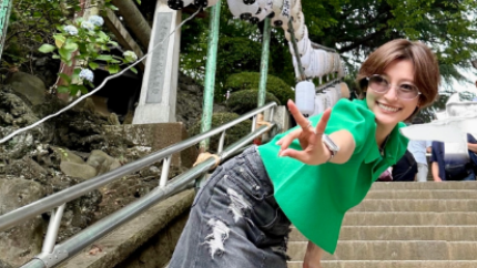 例大祭がおこなわれたという品川神社の階段で、弾ける笑顔を見せる森高にファンの注目が集まっている。