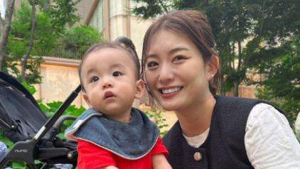 外でお靴デビューした息子と戯れる自身や、夫の井戸田潤の幸せ親子ショットなどが公開された。