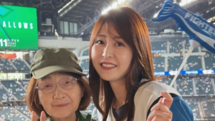 「念願の家族3世代で野球観戦 in 北海道。86才のおばあちゃんが人生で1回でいいから行ってみたい!!と言っていたエスコンフィールド」と綴り、数枚の写真をアップ。