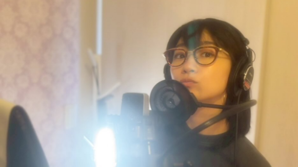 トレードマークのメガネにヘッドフォンを装着した、時東のレコーディングショットにファンの注目が集まっている。
