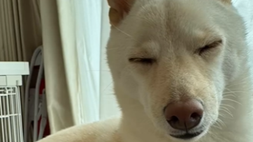 近況ショットを繋ぎ合わせた動画では、愛犬・むぎちゃんのなんとも言えない表情がおさめられている。