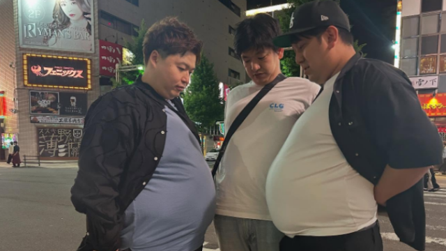 巨漢3人組でお腹を突き合わせた、インパクト大なスリーショットにファンの視線も釘付けのようだ。