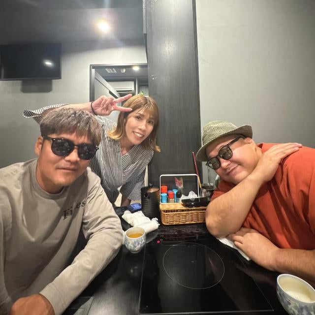 続けて「という事で、食事に行ってきました」と述べ、「相変わらず、笑って楽しく美味しくご飯をいただきました」と感想を伝えた。