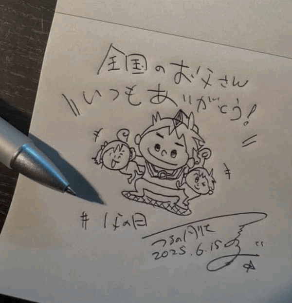 写真には「全国のお父さんいつもありがとう」と全てのお父さんを労う言葉を送ったイラスト付きの手紙を披露。