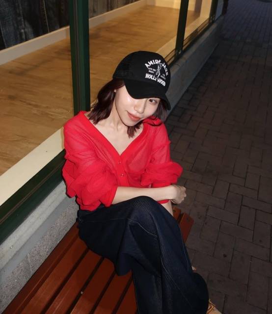「久しぶりのお出かけ」と綴り、赤を基調にした洗練されたファッションを披露。アミリのキャップに、メゾンスペシャルのトップス、ロンスランのパンツを組み合わせ、大人のカジュアルと可愛らしさを兼ね備えたコーディネートに仕上げた。