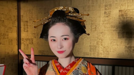 花魁の衣装を身に纏い、ニッコリスマイルでピースサインをする福原が可愛すぎると話題になっている。