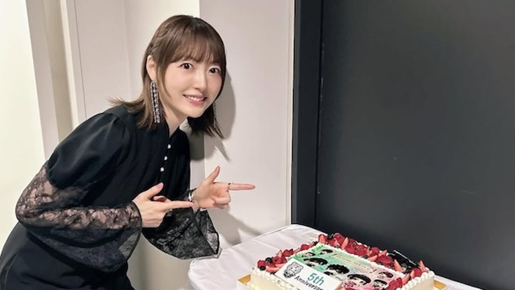 投稿された画像には、5周年記念のケーキを前にポーズを取る花澤の姿や、ちびキャラ化されたPSYCHO-PASSキャラクターが描かれた華やかなケーキ、イベントステージでの出演者たちの記念撮影などが収められている。花澤は黒いレースの袖が特徴的なエレガントなドレス姿で登場し、イベントの特別感を演出した。