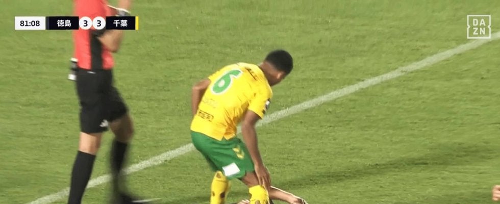 明治安田J2リーグで首位に立つ千葉と、勝点5差で5位の徳島ヴォルティスが第19節で対戦。立ち上がりから激しい撃ち合いになった試合は、3ー3の同点で試合終盤へ。すると82分、問題のシーンを迎える。