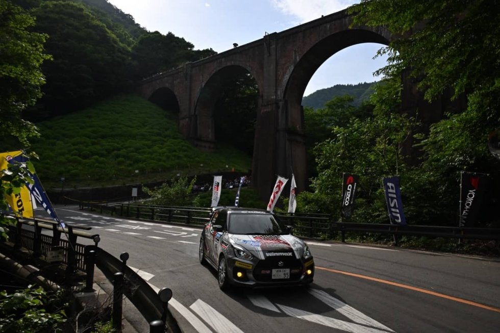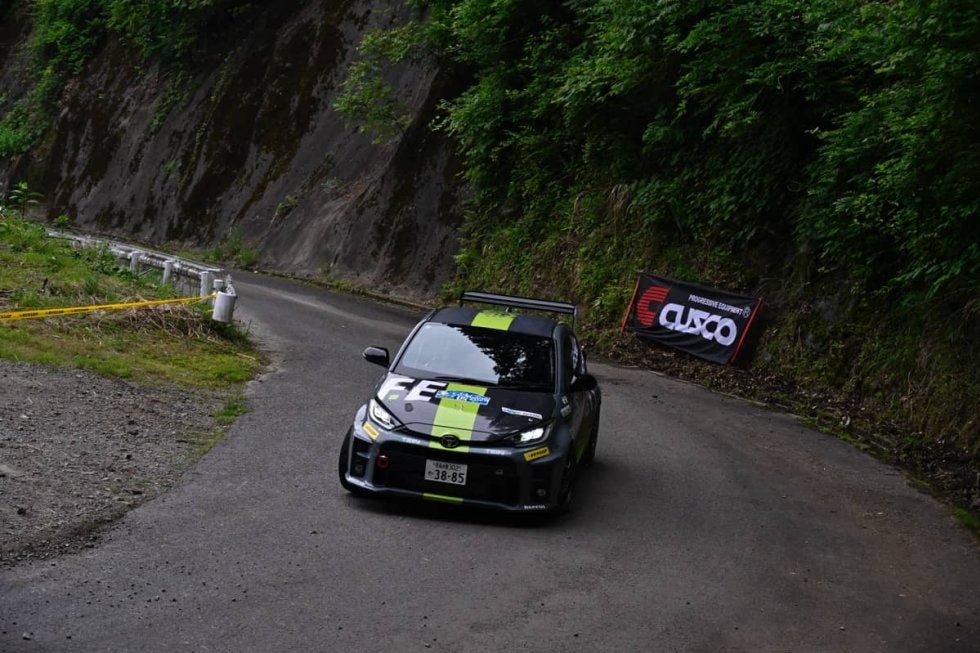 6月7日土曜日、安中しんくみスポーツセンターのサービスパークでセレモニアルスタートを実施。朝から青空が広がり、多くのスペクテイターがステージへと向かうラリーカーを見送った。SS1、前戦飛鳥でシーズン初勝利を手にした新井大輝が、コバライネンに8.8秒、勝田に8.9秒、鎌田卓麻/松本優一(ファビアR5)に13.8秒差をつける会心のベストタイムを刻む。奴田原文雄/東駿吾(GRヤリス・ラリー2)は17.5秒差の5番手タイム、福永修/齊田美早子(シュコダ・ファビアRSラリー2)は18.9秒差の6番手タイムと一歩遅れた。