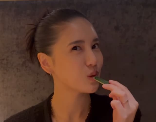 キュウリやニンジンをテンポよく味わう姿を披露し「野菜スティックおいしいよね」とタグで美味しさをアピールした。