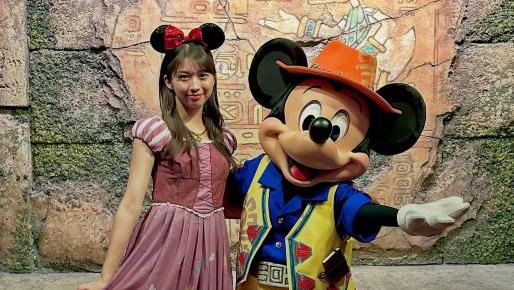 可愛らしいワンピースをまといミニーカチューシャを付け、ミッキーと嬉しそうな表情でツーショットに収まる牧野にファンもメロメロのようだ。