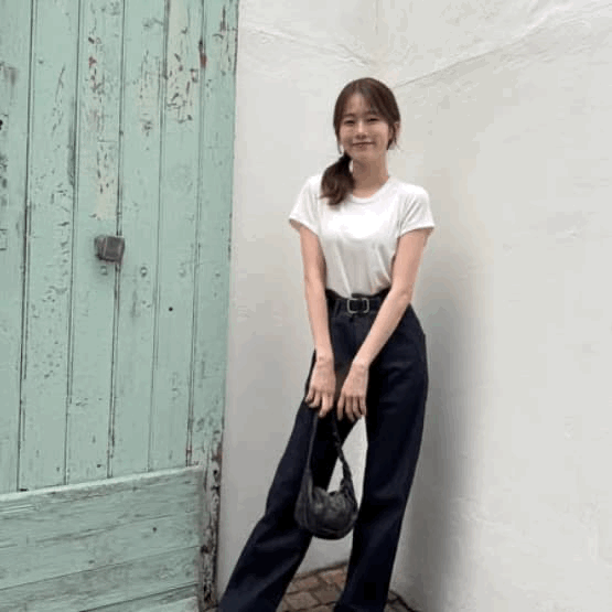 白のシャツに黒のパンツを着用し、清潔感のある爽やかショットを披露。