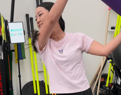 スイングを改良するべく、彼女は心に情熱を灯してトレーニングに奮闘する。