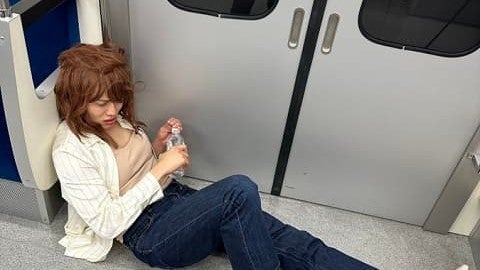 「本日のコント撮影の中のベストショット。」という紹介とともに投稿されたのは、電車のセットらしき場所で座り込む女装した相方・池田直人の写真。酔い潰れて気分が悪そうなその姿は、実際に見かけることがありそうな光景だ。
